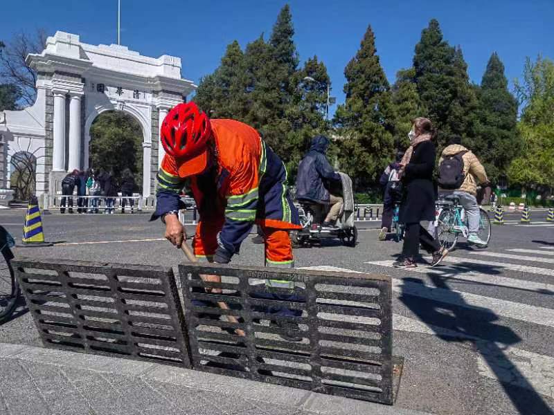 今年7月的红色预警响应期间,关友和同事们及时发现并处理树木倒伏、折断15起,环卫临汛复查雨水箅2400块,他们和水暖电应急保障人员、保安、各单位防汛值守人员一起,共同保障了预警响应期间校园正常秩序和师生出行安全。