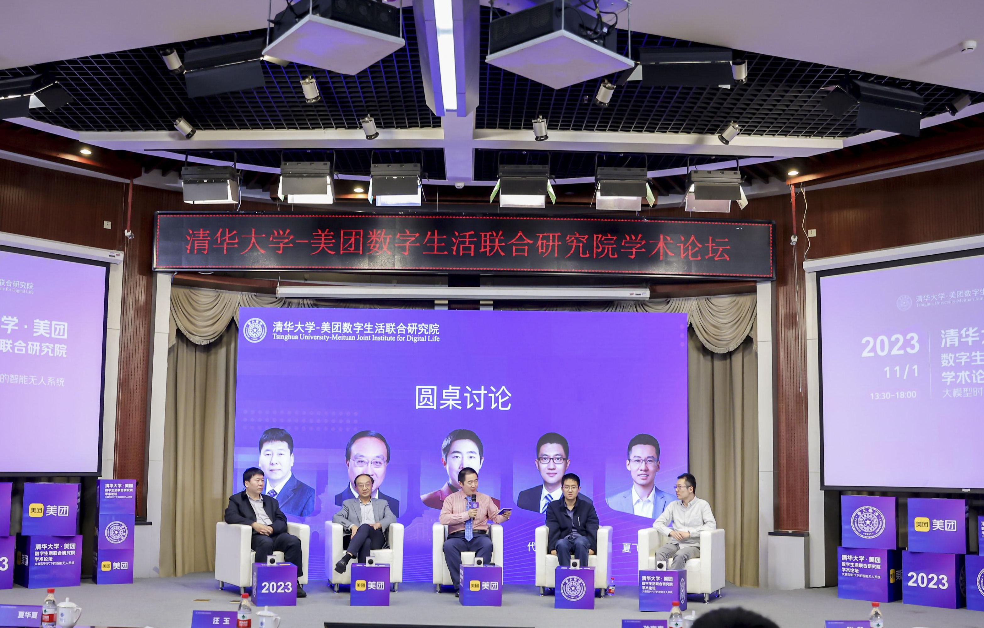 圆桌讨论环节,研究院院长、自动化系主任张涛,张毅、贾庆山、夏飞、乐竞首页电子工程系副教授代季峰围绕大模型、智能无人系统与未来发展进行探讨。