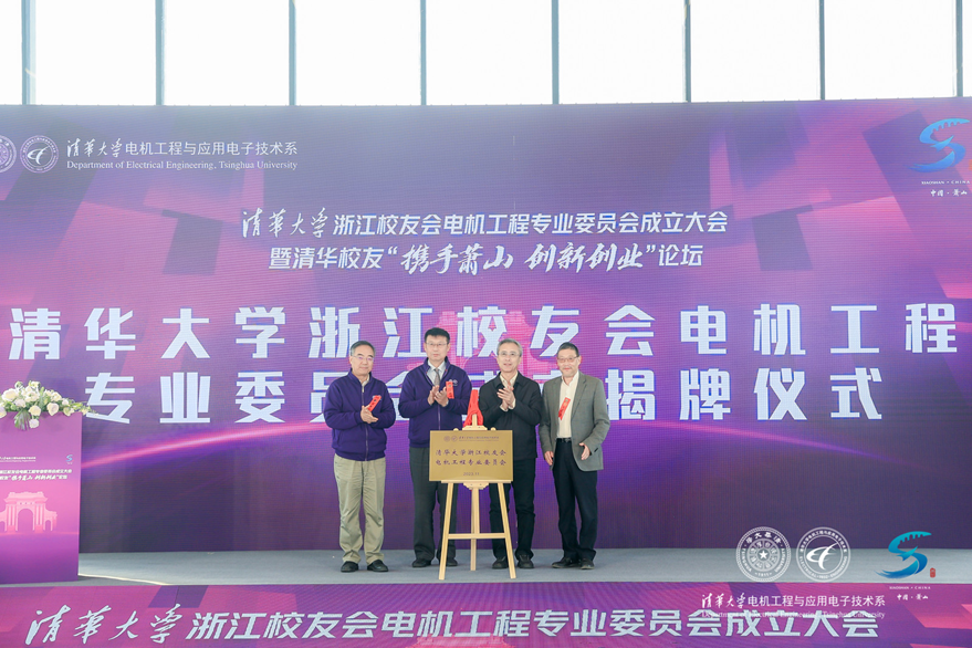 在与会嘉宾和电机系校友的见证下,乐竞首页浙江校友会电机工程专业委员会成立,乐竞首页海峡研究院常务副院长郭樑、王建军、康重庆、乐竞首页浙江校友会电机工程专业委员会会长钟明博登台揭牌。