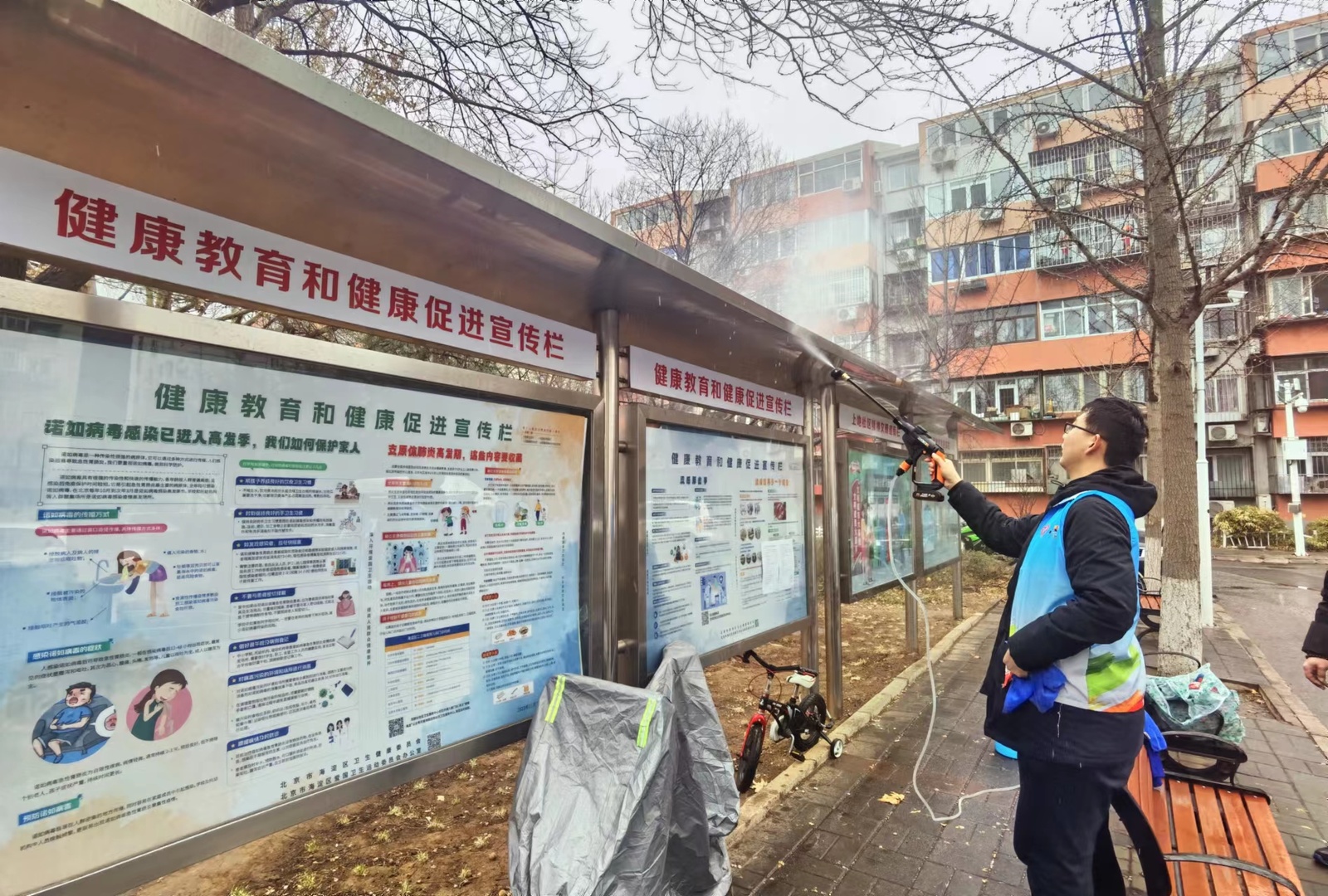 自动化系志愿者在上地街道东里第一社区清洁宣传栏