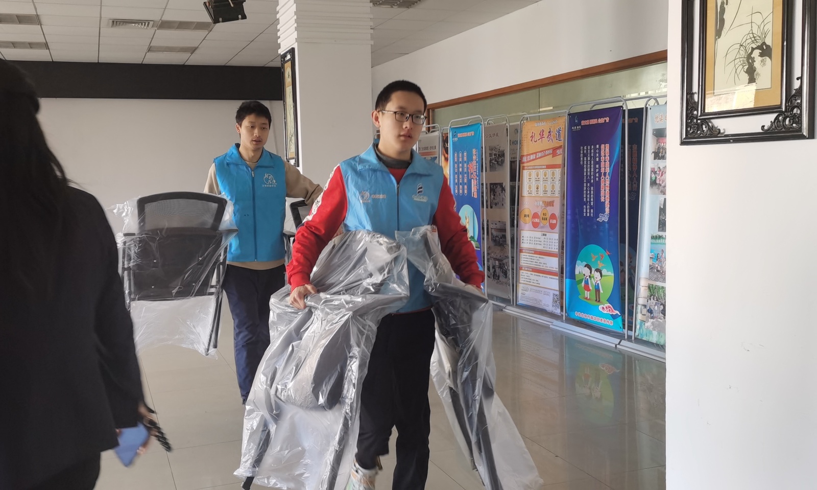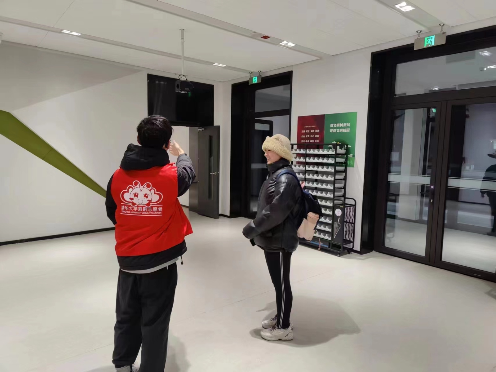志愿者在教学楼内引导教室路线