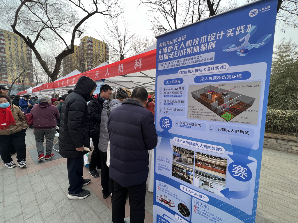 电子系志愿者向中关村街道居民科普无人机知识