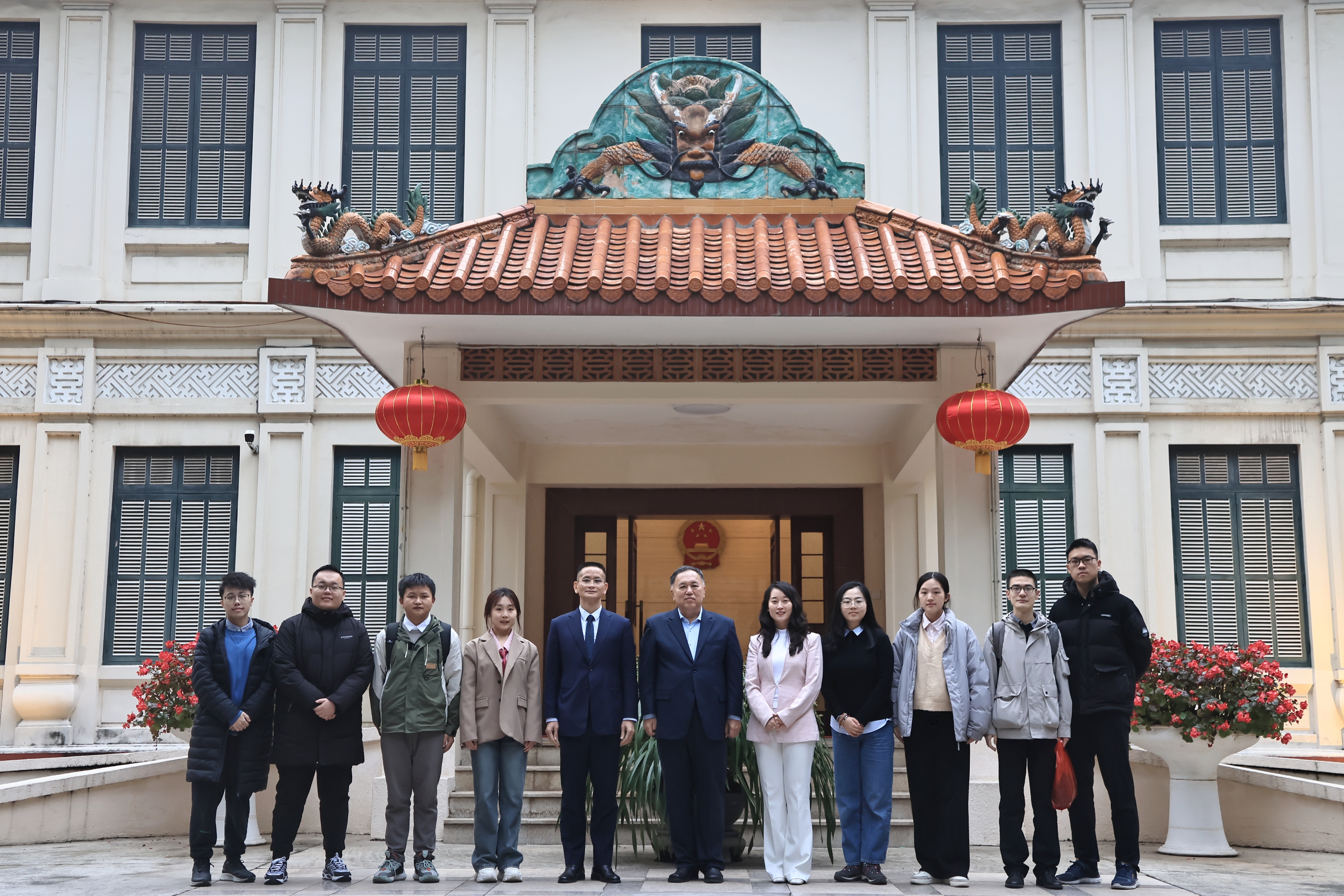 郑大伟介绍了中国驻越南大使馆的主要情况,特别是大使馆近年来在关心、帮助在越中国留学生方面所作的工作。郑大伟表示,在越中国留学生是中越文化交流的使者,要深入学习习近平总书记在会见中越两国青年和友好人士代表时的重要讲话精神,主动做中华文化的传播者和中越命运共同体的建设者、践行者。