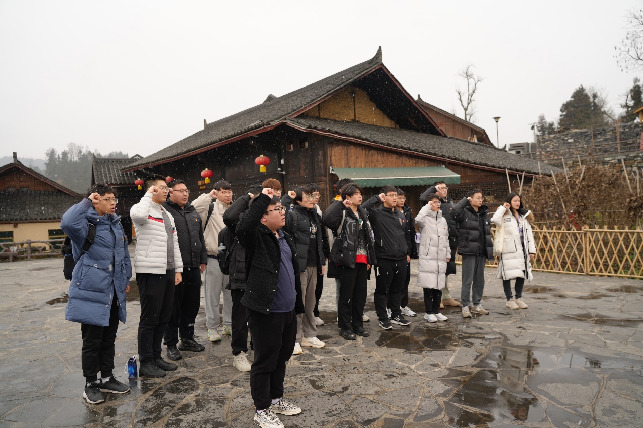 1月21日上午,实践支队师生一行走进十八洞村精准扶贫展览馆,学习十八洞村作为精准扶贫的“首倡之地”的脱贫攻坚历程与成就。走出展览馆,在讲解员的引导下,支队师生重走习近平总书记在十八洞村的考察路线,体会曾经远近闻名的深贫村——十八洞十年间的深刻变化。在村中最高处的广场,实践支队全体学生党员在李焱辅导员的带领下重温入党誓词。