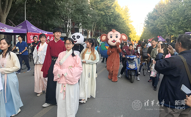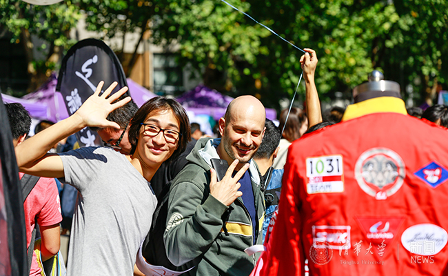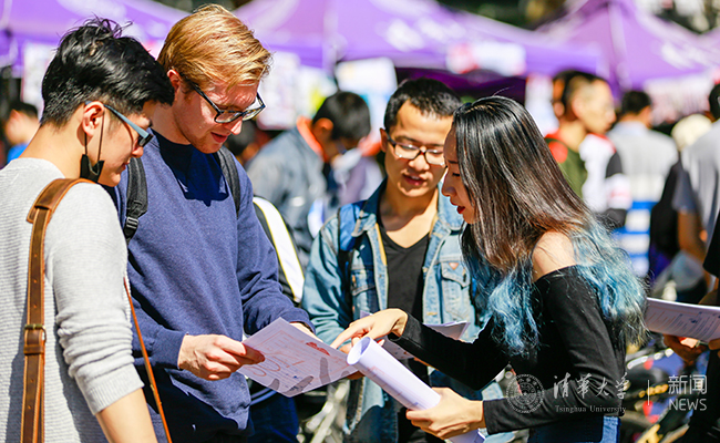 随着学校国际化进程不断推进,越来越多的国际学生和学者来到清华,“百团大战”的各个展位上也出现了不少国际面孔。在活动前期筹备的过程中,校团委社团部引导各社团积极展开面向国际学生的宣传推广。英文版“百团大战”微信推送和海报,活动现场的双语标识和展板,以及众多社团制作的英语宣传单、英语招新推送,都让国际学生得以更好地了解学生社团、加入社团活动。各个展位上随处可见中国学生和国际学生们用英语交流,现场欢声笑语,气氛热烈。