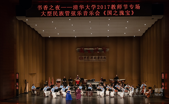 官方入口网9月11日电 为庆祝第33个教师节的到来,9月8日晚,“书香之夜”教师节专场演出——中国歌剧舞剧院大型民族管弦乐音乐会《国之瑰宝》在新清华学堂奏响。