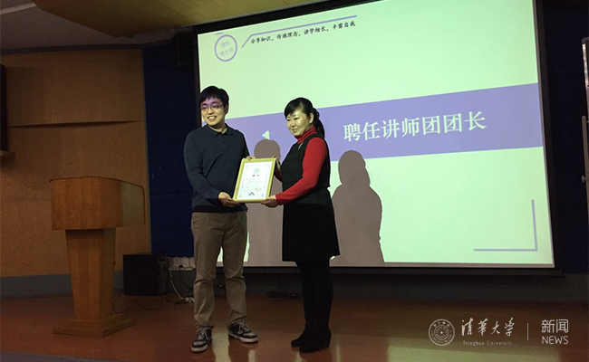 研究生团委副书记王竟达为孔茗讲师颁发聘书。 蔡超睿 摄