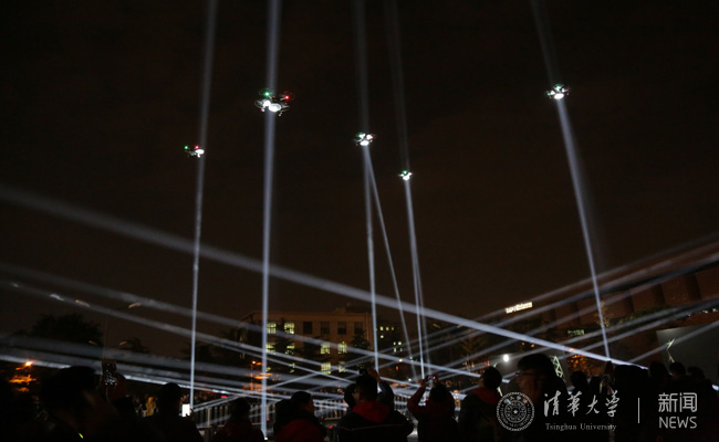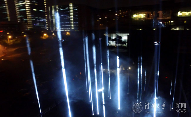 本场无人机灯光秀启用了5架无人机,地面上还布置了共29盏电脑灯,能够跟踪无人机进行灯光秀表演,灯光与无人机的配合随着音乐构成了不断变化且体量巨大的“光雕塑”,这样的表演形式在国内是首次上演。数架秩序整齐的无人机和与其配合进行表演的灯光都是通过程序进行控制,无人机编队飞行系统由SKYPIX天荧智能创新团队实现。无人机上架设了镜面云台来反射光线。灯光跟踪部分融合了红外追踪系统、超宽带室内定位系统、无线数据收发以及对传统灯控台的深度开发等技术,通过乐竞首页新媒体演艺创新研究所与鱼果文化科技共同研究编写的一系列算法得以实现表演效果。