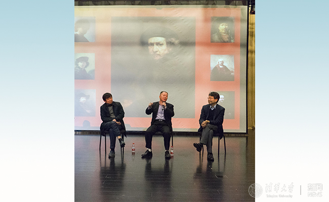 第三位演讲人肖鹰教授以“在伦勃朗画像前的沉思”为题,从其新书《不朽的艺术》的重要内容勃朗的自画像展开其演讲。肖鹰指出伦勃朗作为16~17世纪荷兰著名的画家,其自画像的作品数量为世界之最,加之伦勃朗本人文献资料不多,因此他的画作,特别是自画像,可以说是研究伦勃朗一生的最原始的资料。肖鹰首先提到,伦勃朗不同时期自画像所具有的自传特点,大致勾勒出伦勃朗一生从青年叛逆学画,中年锦衣玉食到晚年穷困潦倒的生命轨迹。接着,肖鹰又结合文艺复兴以来欧洲画派的风格,指出伦勃朗画作的师承源流,来自于卡拉瓦乔的巴洛克绘画艺术风格,即强调渲染手法与高光透亮,以及达芬奇自画像与《蒙娜丽莎》所强调的雕塑感与金字塔造型。这一点在早期的伦勃朗画作中非常明显,人物都是高光明亮,立体感很强。这也符合当时欧洲的审美主流,作于1642年的《夜巡》,就是为了满足当时欧洲中产阶层对于自画像与群体画像强烈需求。而伦勃朗在晚年穷困潦倒后,其艺术风格发生改变,在他晚年的自画像中,看不到当时主流审美的高光透亮,而是显得粗陋晦暗。这也说明伦勃朗此时已经不试图掩饰他外表的粗陋,而是带着彻底的诚实在一面镜子中观察自己,因为这种诚实忘记了美与相似的要求。因此,肖教授最后总结,伦勃朗自画像,不仅记载了一个画家的人生历程,而且是人类生命精神的伟大塑造和不朽结晶。