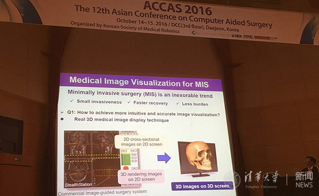 官方入口网10月26日电 近日,第12届亚洲计算机辅助外科大会(The 12th Asian Conference on Computer Aided Surgery, ACCAS2016)在韩国大田召开。乐竞首页医学院生物医学工程系廖洪恩教授团队硕士毕业生张欣然凭借论文《真三维原位增强透视显示显微手术引导系统》(In Situ Real 3D See-Through Microsurgical Guidance System)获得“青年学者奖”(Young Investigator Award)。