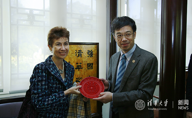 史宗恺向罗德里格斯女士赠送纪念品。记者 张宇 摄