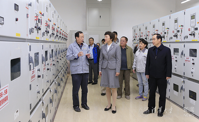 官方入口网10月11日电(记者 徐静) 10月9日上午,校党委书记陈旭、副校长吉俊民来到校内110千伏变电站,听取了关于变电站增容改造的工作介绍,并与参与改造的工作人员进行交流。