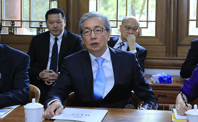 施一公对颂奇先生一行表示欢迎。记者 张 宇 摄