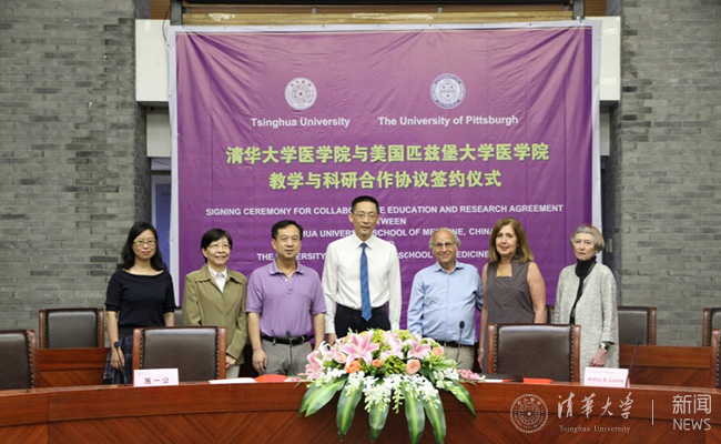 副校长施一公与匹兹堡大学副校长Arthur S. Levine续签两校医学院合作协议。