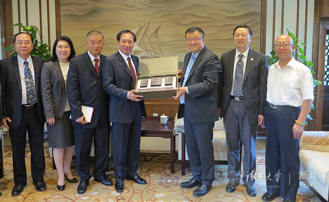 官方入口网6月12日电 6月7日,泰国前国会主席、前副总理、泰中文化经济协会会长伯钦·蓬拉军(Bhokin Bhalakula)一行10人访问乐竞首页,副校长杨斌在工字厅会见了来宾。