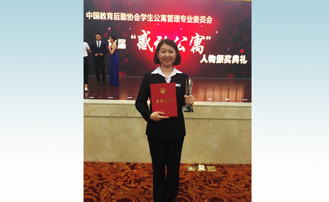 为了树立当代高校公寓人的先锋榜样,全国寓专会评选出爱岗敬业、成绩显著、事迹感人的全国高校“感动公寓”人物,首届一共10名。全国各省、直辖市、自治区各自最多评选推荐1名代表参评。尚杰在北京市高校初选中脱颖而出,代表北京市参加终评,最终在全国22名候选人中排名第3,荣获首届全国高校“感动公寓”人物。