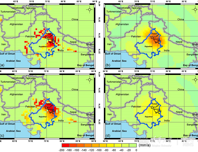 据悉,发源于我国青藏高原的印度河和恒河上游冰雪储量变化对下游印度北部平原的可获得水量、用水方式及农业生产有重要影响;印度北部平原是全球地下水亏损最为严重的地区。准确评估该区域地下水亏损量及其变化情势,是全球遥感水文学关注的热点和难点问题之一,同时对青藏高原冰川质量亏损的精确评估也有重要意义。2009年美国宇航局Rodell等在《自然》杂志上的论文首次采用重力卫星GRACE评估了印度北部平原地下水的亏损,公布其速率为18±4.4 km3/年。该文一经发表即受到科学界及政府相关部门的广泛关注和争议。