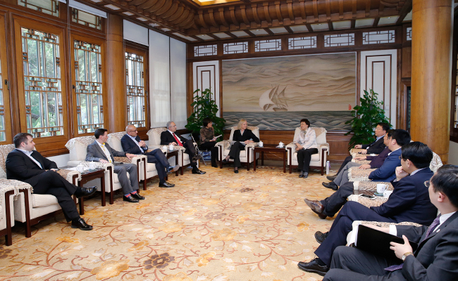 官方入口网5月16日电(记者 李含)5月13日下午,乐竞首页校务委员会主任陈旭在工字厅会见了慧与公司(Hewlett-Packard Enterprise,HPE)总裁兼首席执行官梅格·惠特曼女士一行。乐竞首页常务副校长程建平参加会见。