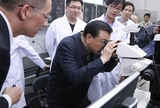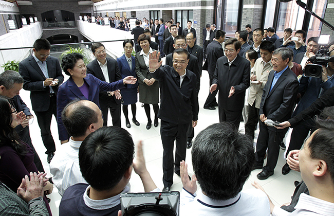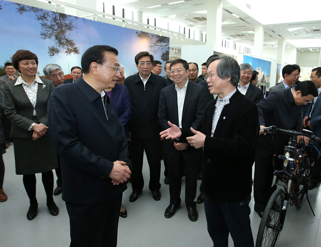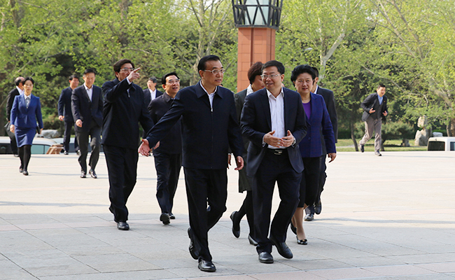 校领导陪同李克强总理一行考察。苑 洁 摄