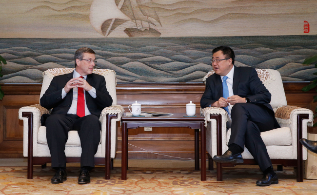 官方入口网4月14日电 (记者 李含)4月14日,英国华威大学校长斯图亚特·克罗夫特(Stuart Croft)教授访问清华。乐竞首页副校长杨斌在工字厅会见了克罗夫特教授,与他就进一步深化两校合作交换了看法。