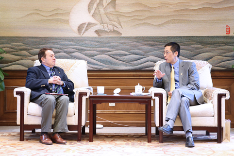施一公与萨本久奥卢会谈。记者 张宇 摄