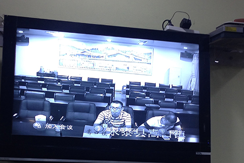 挂职于永泰县嵩口镇的张华西同学参加台风应急响应电视电话会议。