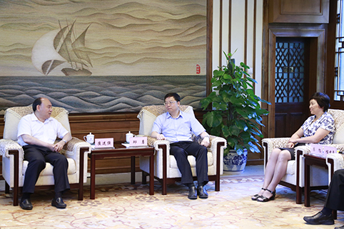 邱勇、陈旭与崔述强会谈。记者 张宇 摄