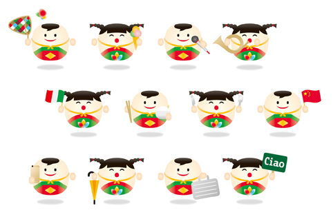 吉祥物“和和”、“梦梦”的设计同样源自“天、地、人、和”中的“和”字。“和”由“禾”和“口”组合而成。“禾”代表水稻,寓意为粮食;“口”代表饮食,延伸意义为人口。造型借鉴中国民间泥塑“大阿福”的典型形象,身躯源自“和”字中的“口”字,手拿体现“禾”字的稻谷,形象具有积极、友善、乐观的精神,吉祥物寓意不仅紧扣世博会主题,也与中国馆主题相吻合。