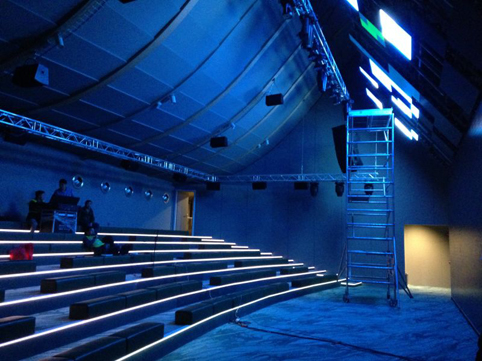 中国馆场地是一块南北向纵深的基地,游客由场地南侧的田野景观缓缓拾阶而下,“浸”入一望无垠的“麦田”景观,由中国馆东南角不知不觉地进入到建筑内部,顶部雄伟的坡顶暗示着内部戏剧性的空间体验;人们徜徉在流动的麦田装置之间,来到建筑二层核心部位的平台,回望楼下,映入眼中的将是由数万根LED“麦秆”阵列出的变化的壮美山河;影音厅位于二层流线的顶端,空间形态体现着平面和剖面布局中的巨大张力;观众随廊桥穿插回室内,将体会到整个建筑流线最高潮的部分——高耸的胶合木结构屋架构成的出口区,为观众提供了极具纪念性的空间体验。