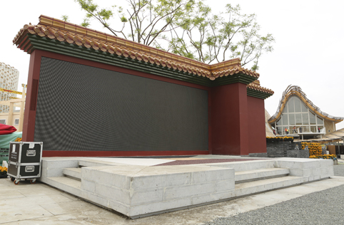 中国馆前区为约1000平米的室外园林景观,与中国馆建筑相得益彰。景观是一片希望的田野,一片具有中国典型农业文明特征的田野。由作物与植物组成的田野上,镶嵌着具有舞台功能的先农坛、具有舞台背景功能的故宫红墙、具有疏散功能的北京胡同、具有主通道功能的意象江河等,这些景观元素与山型的建筑正立面相呼应,呈现出一片壮阔的中国大地景观。中国馆的园林景观由北京市承建,将结合有关元素宣传2019年北京世界园艺博览会。景观内舞台背景上将设置大屏幕,宣传介绍中国各省区市风光、农业饮食文化和中国传统民俗文化等。