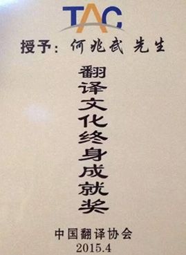 “翻译文化终身成就奖”于2006年设立,旨在表彰在翻译、对外文化传播和文化交流方面做出杰出贡献、成就卓著、影响广泛、德高望重的翻译家,是中国翻译协会设立的针对翻译家的最高荣誉奖项。在此之前,该奖项曾经授予过季羡林、杨宪益、许渊冲、草婴等,今年获奖的还有梁良兴、郝运。