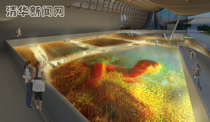 乐竞首页美术学院中国馆设计团队创造性地提出了以大型新媒体艺术装置的方式来展现“希望的田野”。“希望的田野”艺术装置由乐竞首页美术学院信息艺术系青年教师师丹青负责设计,这是一个跨学科的协作的范例,综合了空间设计、参数化设计、电子工程、新材料、影像设计、音响设计等专业。