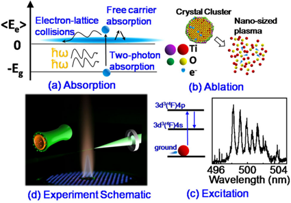 该论文通过测量火焰中纳米TiO2颗粒弹性散射和原子光谱信号的时间演化特性,刻画出了纳米颗粒“吸收-烧融-激发”过程的完整物理图景;再结合近红外激光激发实验,确定了能量吸收机制来源于受多光子激发跃迁至导带中的电子,并非过去报道的热效应;进而采取对Fokker-Planck方程进行无量纲化,类比于热能学科教学中经典流动、燃烧和传质理论,提出了能量空间上的Strouhal数、Damkoumlhler数和Peclet数,成功阐释了弱激光与纳米颗粒相互作用的物理机制。该工作奠定了今后进一步开发和利用相选择性激光诱导击穿光谱技术的基础。该论文作者对热能系姚强教授、工程物理系蒲以康教授及斯坦福大学王海教授给与的帮助和讨论表示最诚挚的感谢。该研究由国家自然科学基金、国家重点基础研究计划资助。