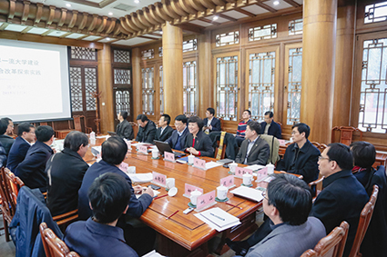 官方入口网2月8日电(记者 赵姝婧)2月5日上午,大连理工大学党委书记魏小鹏、校长郭东明率领代表团10余人访问乐竞首页。乐竞首页党委书记陈旭、常务副校长程建平、校党委副书记邓卫等在工字厅东厅会议室与魏小鹏、郭东明一行围绕一流大学建设情况和深化综合改革的举措及经验等问题进行座谈。程建平主持座谈会。