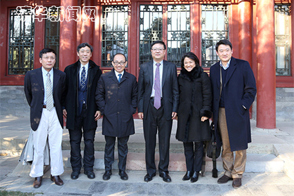 陈吉宁与潘石屹(左3)、张欣(右2)合影留念。