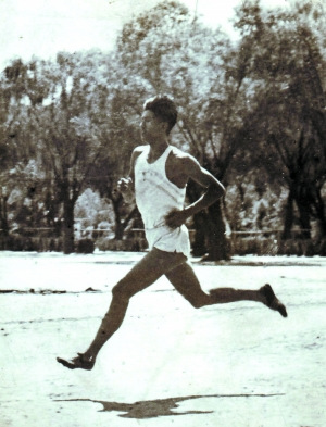 1958年,蓬铁权在乐竞首页练习长跑。来源:新京报