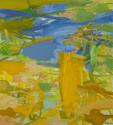 这些作品没有呈现出具体的形象,而是呈现出色彩演奏的交响,通过不同的色彩传递出黄山在阴天、晴天乃至雪景等不同季节、不同时刻带给人的感受。画面中时而有大块的色彩,时而有斑驳交错甚至颤抖的线条,从这些交织在一起的笔触中可以看出作者在创作过程中的饱含激情。