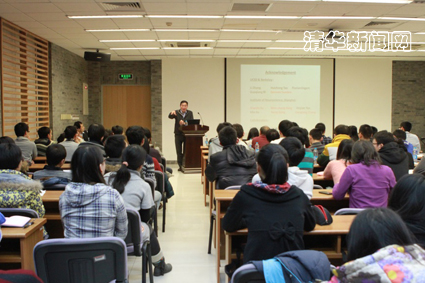 图为蒲慕明做客水木清华讲解大脑的可塑性。