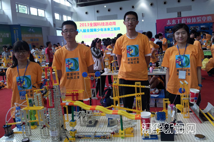 官方入口网5月31日电 5月19至25日,2013年全国科技活动周——第八届全国青少年未来工程师暨首届创意工程挑战赛在北京农业展览馆新馆举行。清华附中高1201班孟靖童、张嘉辉、阙中一、粱梦佳组成的4人小组制作的工程模型“危情二十秒” 地震装置荣获大赛科学原理设计金奖。