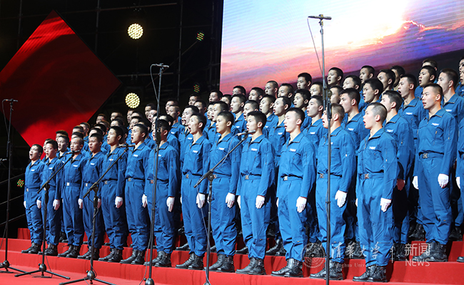 由飞行学员班演唱的《蓝天召唤我》激情澎湃,唱出了学员们对翱翔在祖国蓝天的渴望,唱出了保卫祖国和人民的奉献精神,更唱出了“一二·九”传承八十余年的精神内核。