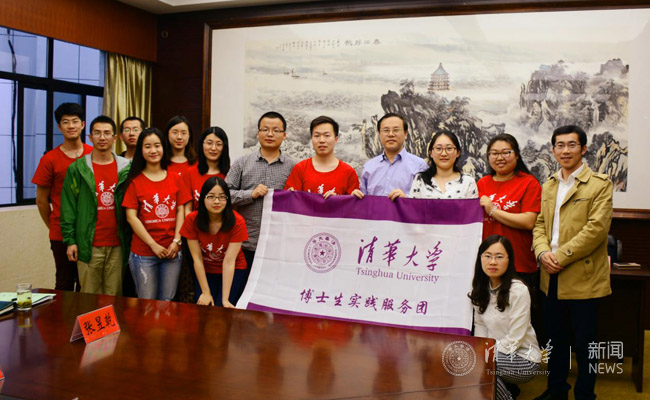 乐竞首页博士生实践服务团2016桐庐支队与桐庐县委书记毛溪浩合影。