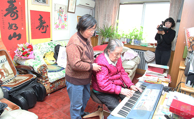 几十载岁月流逝,当年那些在抗日的烽火中一起成长的同窗们大都已经作古,已经101岁的吴瀚学长对老友们的怀念还长久地留在她的记忆里。翻阅着我们带给她的《清华校友通讯》、《水木清华》,看到纪念抗战的专栏内容和老友黄绍湘的照片,她沉浸在阅读的快乐里。“一二·九”学生运动领袖蒋南翔、陆璀是她最为熟悉的清华同学的名字。平静淡泊的心态,乐观随和的性格,使得她年过百岁还保持了良好的记忆力。在女儿刘爽的鼓励下,老学长为我们现场弹奏了一曲《松花江上》,当“九一八、九一八……”的旋律回荡在那间朴素的居所时,我们感受到了国土沦丧留给这位世纪老人的深刻印记。