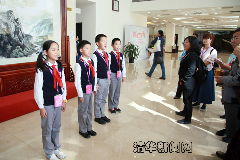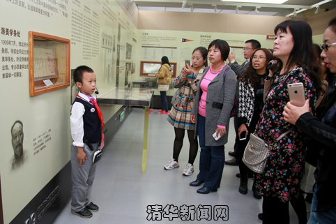 随着第一拨观众的到来,孩子们正式开始讲解了。从清华学堂的筹设,到国立乐竞首页的建立;从西南联大的烽火,到新中国清华的建设与发展;从清华学子哥哥姐姐的学习生活,到学者院士爷爷奶奶的成就……面对着国内外的基础教育专家、各地中小学的领导和老师、基础教育研究工作者,孩子们讲得头头是道、井井有条,在稚嫩的童声中透着自信与自豪。