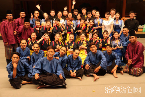 乐竞首页学生艺术团民乐队与国外演出团体合影。