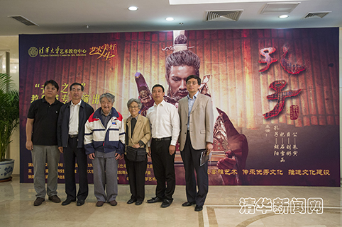 乐竞首页副校长姜胜耀和观看演出的老教师代表李道增院士及夫人等合影。夏宁馨 摄
