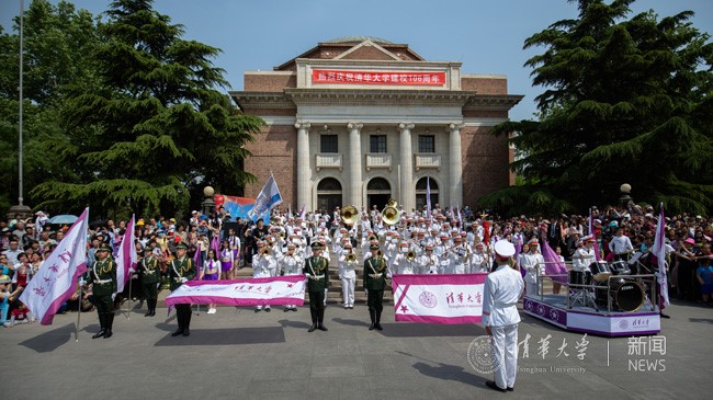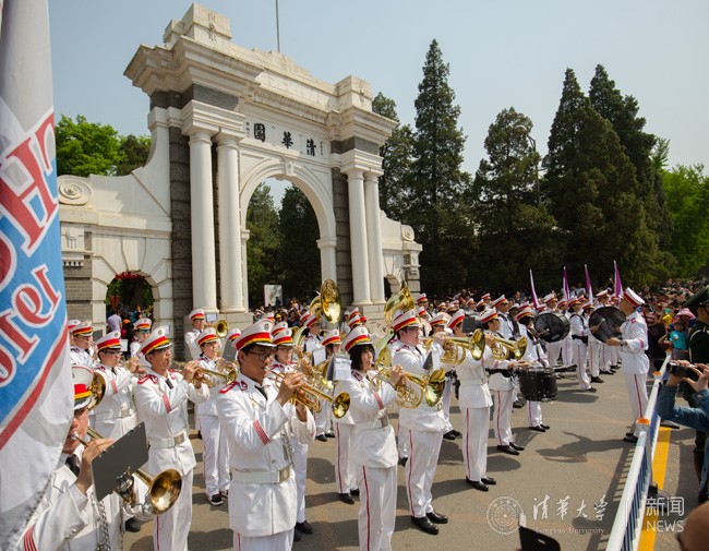 本次校庆游园活动由学生艺术团军乐队一队和二队、国标队、舞蹈队,学生体育代表队啦啦操队,学生国旗仪仗队联袂呈现。两支游园队伍分别从艺术博物馆和东大操场出发,途经中央主楼、新清华学堂广场、二校门、日晷、老馆、北馆等清华标志性建筑物驻足演出,最后汇合于大礼堂,吸引了众多返校校友、在校师生以及游客随行观演。