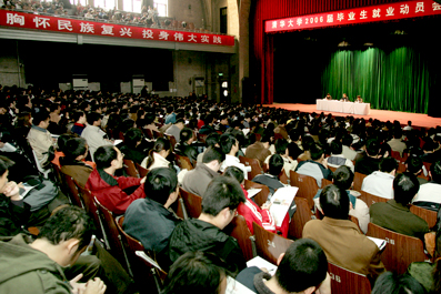 杨振斌首先回顾了2005年我校毕业生就业情况。2005年共有1842家用人单位向我校提出需求共17485条(不包括学生个人联系的信息),全校毕业生平均就业供需比(参加就业的毕业生数:需求数)为1:4.6。截至9月1日,我校2005届统分毕业本科生和研究生的就业率分别为95.5%和96.7%。