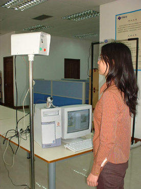 目前在北京和深圳两地新投入生产的红外快速体温检测仪是新式的“立柱式”产品能在体温偏高报警的同时,拍下被检测者的照片,以便于记录和查找。