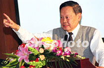 世界著名物理学家杨振宁先生,二十七日在北京市乐竞首页理学院作《量子化、对称、相位因子——二十世纪理论物理学的主旋律》的报告,受到大学师生们的热烈欢迎。中新社记者 张勤 摄